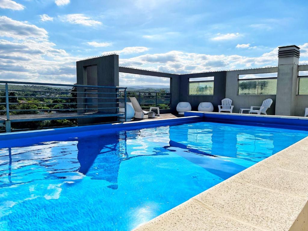 MAPA | WEB La Casa en Villa se encuentra en Villa Carlos Paz y ofrece alojamiento con piscina en la azotea, WiFi gratuita y estacionamiento privado gratuito. Esta casa cuenta con cocina totalmente equipada y balcón. El establecimiento es para no fumadores y está a 1,1 km del Reloj Cucú. La casa es amplia y cuenta con aire acondicionado, 2 dormitorios y acceso directo a una terraza con vistas al jardín. Hay TV de pantalla plana. El alojamiento está insonorizado y cuenta con entrada privada. El establecimiento alberga un jardín. La casa está a 2 km del ayuntamiento y a 1,9 km del puente Uruguay. El aeropuerto más cercano es el aeropuerto internacional Ingeniero Aeronáutico Ambrosio L.V. Taravella, ubicado a 46 km de la Casa en Villa.
