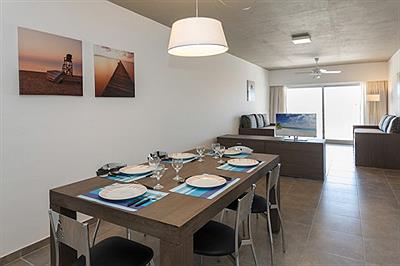 Apartamentos para 2 a 5 personas, con excepcional vista al mar y acceso directo desde el complejo hacia la playa. Equipados con amplio baño, con bañera de hidromasajes, secador de pelo y ventilación natural al exterior. Sector de cocina completo con cocina con horno, extractor de humos, mesada con pileta, heladera, tostadora de pan, cafetera eléctrica y microondas. Sector de dormitorio con una cama doble con sommier y salida a balcón terraza individual donde cuenta con una mesa y sillas para disfrutar de la salida del sol o la luna. TV cable, ventilador de techo y WiFi. Cochera individual